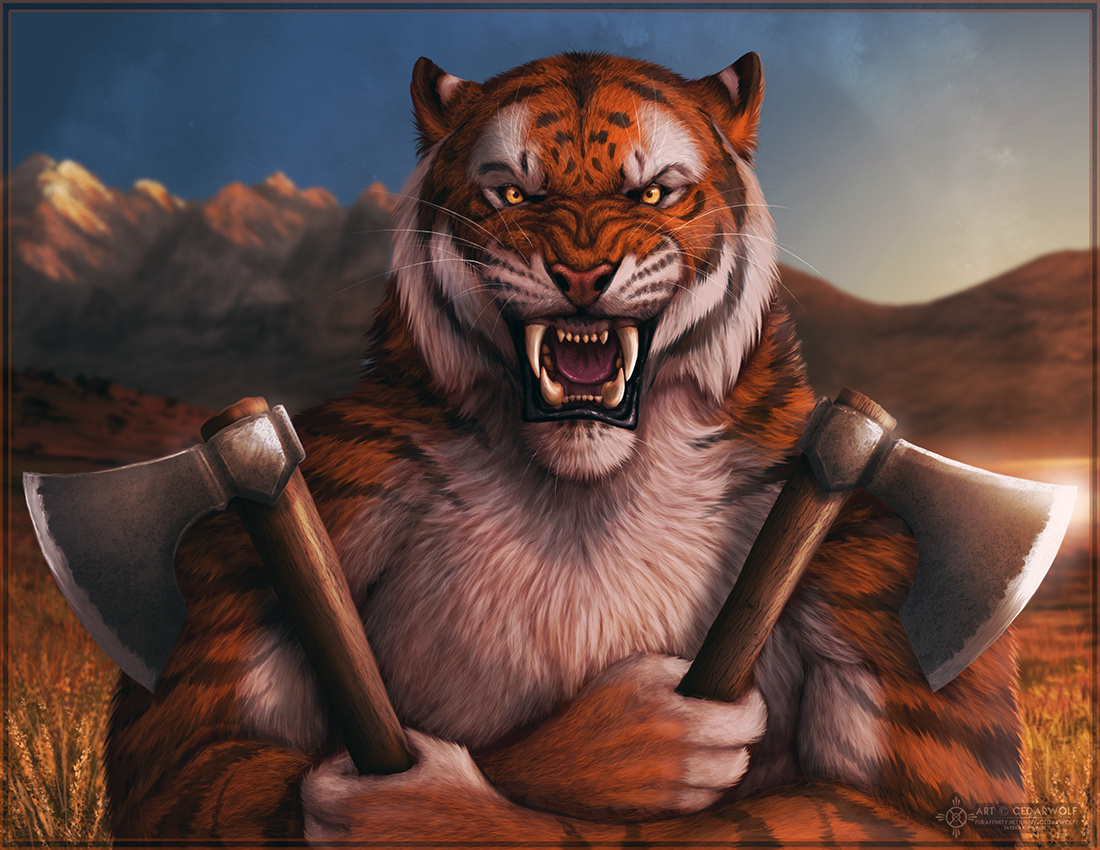 2. Redesign the facial markings so they look more natural, with more white fur, and with the stripes having more varying shapes and more varying thickness with thinner stripes near the eyes and thicker stripes in the cheek fluff. Tiger photographs may be used for reference. The initial design choice was some specific stripe shapes to "make it more unique" but I don't think that's a good idea anymore.